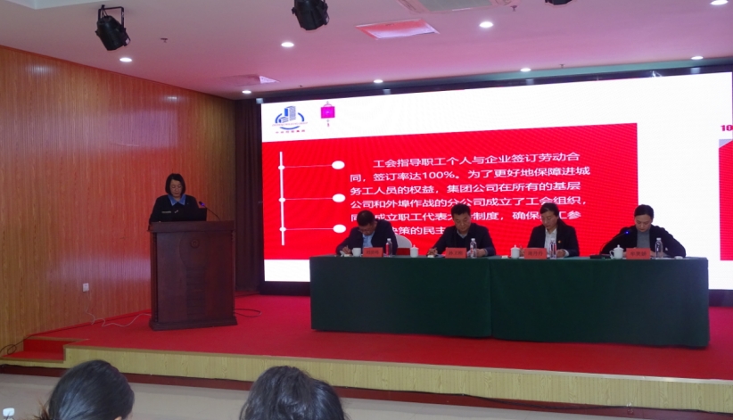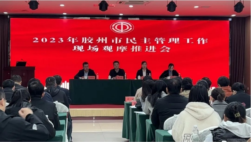 11月15日,膠州市總工會在集團中啟大廈二樓多功能廳召開全市2023年國有及非公企業民主管理工作現場觀摩推進會,深入貫徹落實習近平總書記關于全過程人民民主的重要指示精神,交流推廣典型單位民主管理工作先進經驗,進一步推動全市企業民主管理工作走深、走實、擴大有效覆蓋面。膠州市總工會黨組成員、副主席孫衛剛,膠州市總工會掛職副主席(青島軟控機電工程有限公司工會主席)周丹丹,膠州市人力資源和社會保障局專技科負責人劉洪鳴,膠州市總工會基層工作部部長牟笑嬌,各鎮街工會副主席,市國有及部分非公企業代表等80余人參加會議。集團工會主席劉博參加會議并上臺做典型發言。