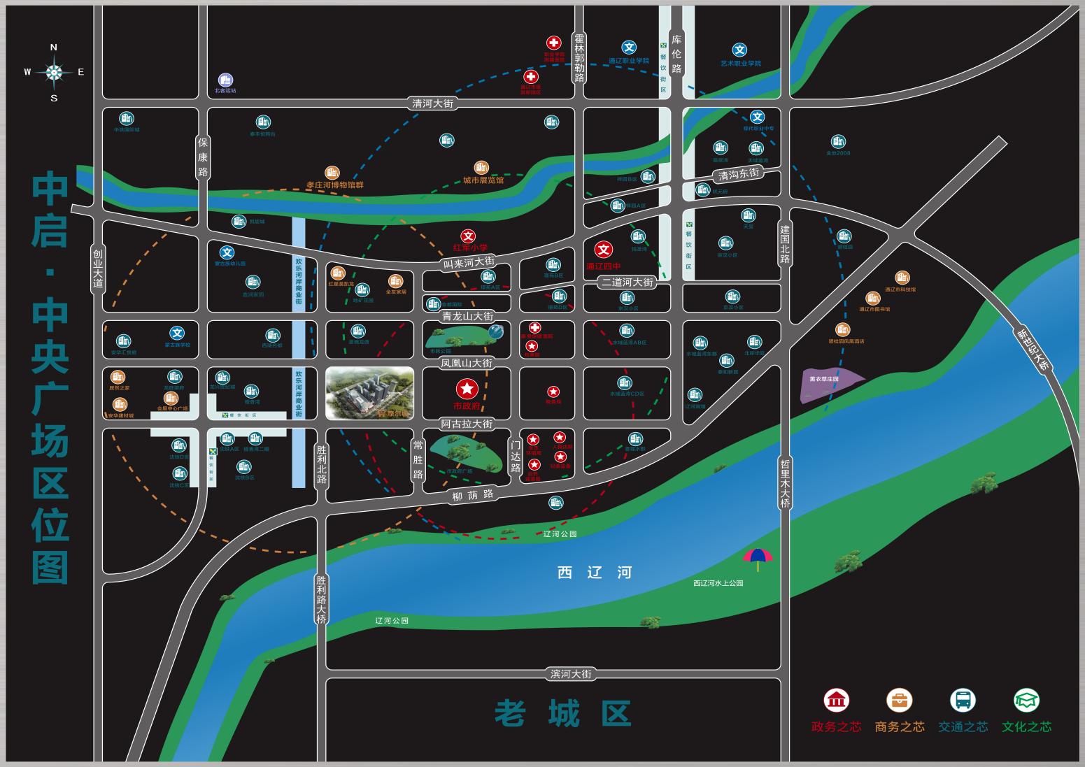 中啟·中央廣場位于阿古拉大街以北、勝利路以東,地處新城區發展的文化中心,生態中心,政務中心,商務中心,金融中心的核心區,交通便利,周邊重點學區、成熟社區林立,地理位置優越,商業氛圍濃郁,期待您的加入!
