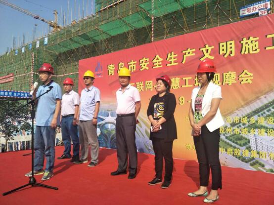 9月28日上午,青島市城鄉(xiāng)建委建筑工程管理局主辦的安全生產(chǎn)智慧綠色施工現(xiàn)場觀摩會在我公司施工的膠東國際機場綜合辦公樓及生活用房項目施工現(xiàn)場隆重舉行。青島市建管局安監(jiān)站副站長夏建輝、膠州市建設(shè)局副局長王世梅、安監(jiān)站長秦紅斌、中啟控股集團監(jiān)事會主席張桂香、中啟膠建副總經(jīng)理劉堯等領(lǐng)導(dǎo)以及各區(qū)市施工、監(jiān)理單位安全分管領(lǐng)導(dǎo)、機構(gòu)負責人、項目經(jīng)理、項目總監(jiān)180余人參加了本次觀摩大會。