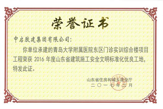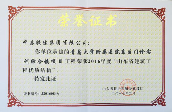 青醫(yī)附院東區(qū)門診實訓樓項目是中啟膠建集團建筑七公司施工的一項省、市重點工程。該項目開工以來,克服施工現(xiàn)場狹窄、施工工期緊、施工工程量大等重重困難,優(yōu)質(zhì)、快速的完成既定任務(wù)。期間榮獲了青島市優(yōu)質(zhì)工程、山東省優(yōu)質(zhì)結(jié)構(gòu)、青島市綜合管理清單樣板工程、山東省安全文明工地、山東省綠色科技示范工程等多項榮譽,并成功舉辦了“青島市建筑工程質(zhì)量提升行動作為示范工程”觀摩會一項。