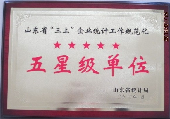 我公司被省統計局認定為山東省“三上”企業統計工作規范化五星級單位。“三上”企業統計星級單位管理,是我省推進“四大工程”建設,提高企業統計規范化管理水平,而開展的一項創新性工作。公司認真按照《山東省“三上”企業統計星級單位管理實施方案》規定的標準,從管理制度、機構設置、軟硬件設施、統計臺賬、資料管理、法制建設等方面,自覺加強企業統計工作,經過嚴格逐項打分評定后,順利通過了省統計局驗收。這是省統計局對我公司統計工作的充分肯定,標志著我公司的統計工作規范化水平已經走在全省企業的前列。我公司將以此為鞭策,進一步加強單位統計工作,提高統計工作規范化水平,使統計工作在提高源頭統計數據質量、服務行業發展中發揮更大的作用。