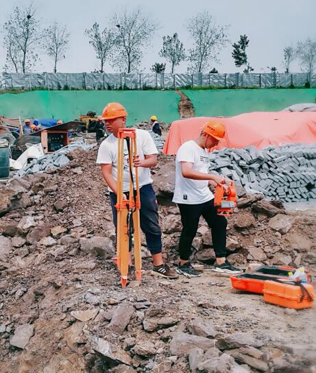 (新入職大學(xué)生正在現(xiàn)場(chǎng)施工放線)
