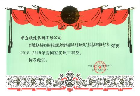 12月8日,由中國施工企業管理協會組織的“2019年國家優質工程獎總結表彰大會”在北京國家會議中心隆重召開。建筑七公司承建的“動車組次輪五級檢修建設項目表面處理廠房及總裝車體聯合廠房”喜獲國家優質工程獎。