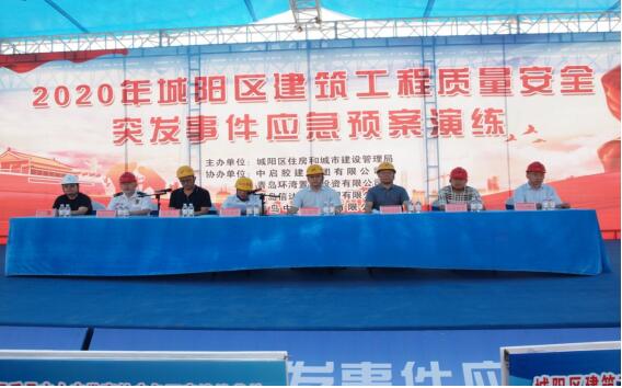 7月15日上午,由城陽區住房和城市建設管理局主辦,中啟膠建集團有限公司、青島環灣置業投資有限公司、青島中筑置業有限公司、青島信達工程管理有限公司協辦、區應急局、區消防大隊、各街道辦事處相關人員、各應急搶險突擊隊等26個部門和單位共計300余人參加了“2020年城陽區建筑工程質量安全突發事件應急預案演練”。華東公司經理徐奎學、副經理張立濤帶領公司應急救援突擊隊參與此次演練。