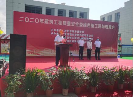 膠州市城鄉建設局副局長高磊、中啟膠建集團有限公司常務副總經理馬振聲出席了開幕式,并分別致辭。膠州市質監站站長張鵬程主持了開幕式。高磊副局長在致辭中寄語全市建筑業從業者,通過本次觀摩活動,互相學習,積極創新,進一步提高膠州市建筑業的整體水平,力爭在三年內改變膠州市建筑業大而不強的現狀,從技術創新、新材料應用、新管理方式應用、綠色建造等全面達到青島市領先水平。