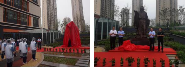 上午九時,徐奎學副總裁、劉光平校長共同為孔子像揭幕,并分別致辭,勉勵同學們立德修身,博學篤志。72名學生代表莊嚴肅立,向至圣先師孔子行三鞠躬禮,面對巍峨矗立的孔子像,齊聲誦讀《論語》,表達對圣人的敬仰之情。