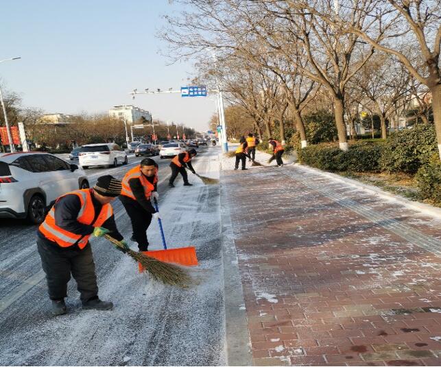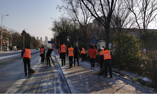 在膠州市澳門路、溫州路、翰林路等路段,膠州公司員工冒著零下8度的嚴寒,團結協作,用雪鏟、掃帚等工具清掃道路積雪。經過大家的共同努力,這些路段的積雪得到全面清理,他們以實際行動為膠州市民安全出行奉獻了自己的愛心。