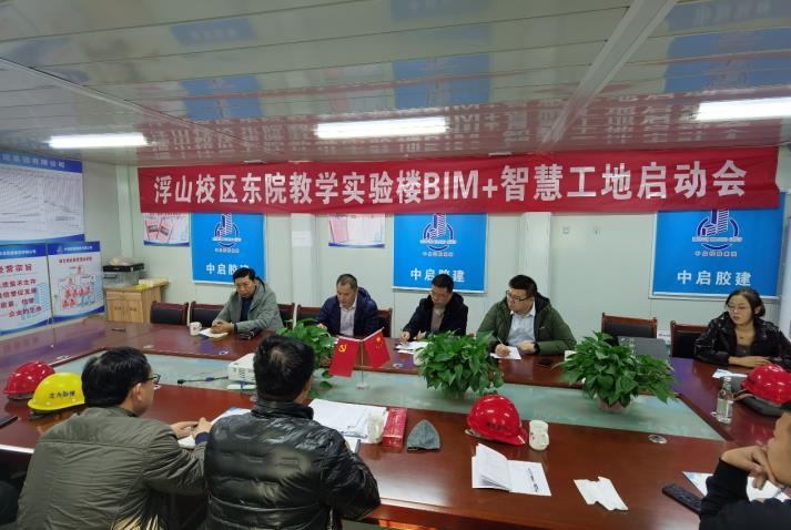 為落實青島市建筑工程智慧化工地建設(shè)政策,推行“互聯(lián)網(wǎng)+管理”模式,爭做青島市第一批智慧化工地創(chuàng)建試點工程,中啟膠建集團(tuán)青島公司自2021年積極參與配合青島市住建局倡導(dǎo)組建智慧化工地管理平臺的調(diào)研工作,并緊跟青島市住建局的步伐,于2021年9月底與廣聯(lián)達(dá)進(jìn)行合作,對浮山校區(qū)東院教學(xué)實驗樓項目實施智慧化工地建設(shè)。