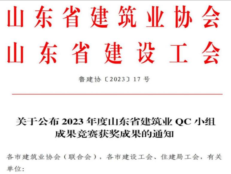 7月7日,山東省建筑業協會和山東省建設工會公布了QC獲獎成果。集團9項QC成果獲獎。