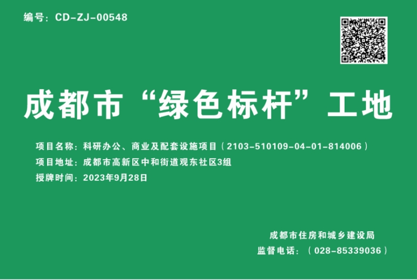 近日,由中啟膠建集團膠州公司承建的科研辦公、商業及配套設施項目(2103-510109-04-01-814006)榮獲“成都市綠色標桿工地”,充分展現了集團公司在成都市住建領域的綜合實力。