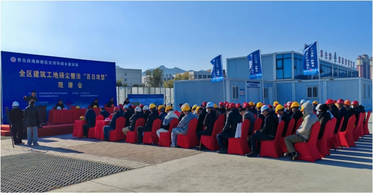 為貫徹落實省、市關于大氣污染治理工作部署要求,進一步提升建筑施工揚塵治理水平,12月6日,青島西海岸新區(qū)建筑工地揚塵整治“百日攻堅”觀摩會在公司承建的山東科技大學科技創(chuàng)新中心項目現(xiàn)場舉行。青島西海岸新區(qū)住房和城鄉(xiāng)建設局建管中心副主任馬軍,中啟膠建集團副總經理劉堯、建筑九公司副經理張志昌以及青島西海岸新區(qū)各建筑項目的施工、監(jiān)理單位代表總計200余人參加活動。