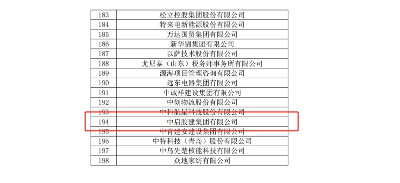 近日,青島市民營經(jīng)濟(jì)發(fā)展局公布了“2024年度青島市民營領(lǐng)軍標(biāo)桿企業(yè)”名單,中啟膠建集團(tuán)連續(xù)兩年上榜。民營領(lǐng)軍標(biāo)桿評(píng)選更重視企業(yè)的行業(yè)引領(lǐng)作用,從行業(yè)地位、經(jīng)營規(guī)模、管理制度、創(chuàng)新發(fā)展等方面對(duì)企業(yè)進(jìn)行綜合評(píng)價(jià)。入選2024年度青島市民營領(lǐng)軍標(biāo)桿的企業(yè)有198家,來自農(nóng)業(yè)、制造業(yè)、服務(wù)業(yè)、建筑業(yè)等各行業(yè),是領(lǐng)軍作用突出、行業(yè)優(yōu)勢(shì)明顯、核心競(jìng)爭(zhēng)力強(qiáng)的民營龍頭企業(yè)。