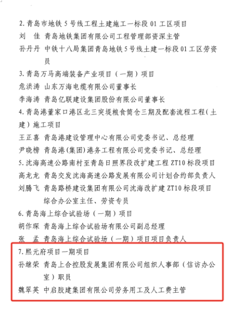 2024年8月,膠州公司的熙園府項目一期工程、七公司的中共青島市委黨校(青島行政學院)基礎設施擴建項目,代表山東省圓滿完成了國務院保障農民工工資支付工作實地考核任務。